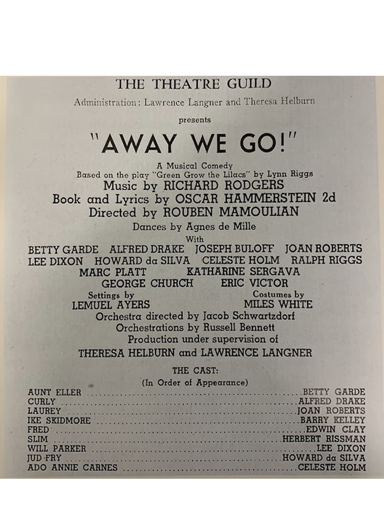 And so, Rodgers and Hammerstein decided to make some changes, notably to the final number, “Oklahoma.” As the cast rehearsed the new version of the song in the Colonial's lobby, they were creating a showstopper tune - as well as the show's future title!