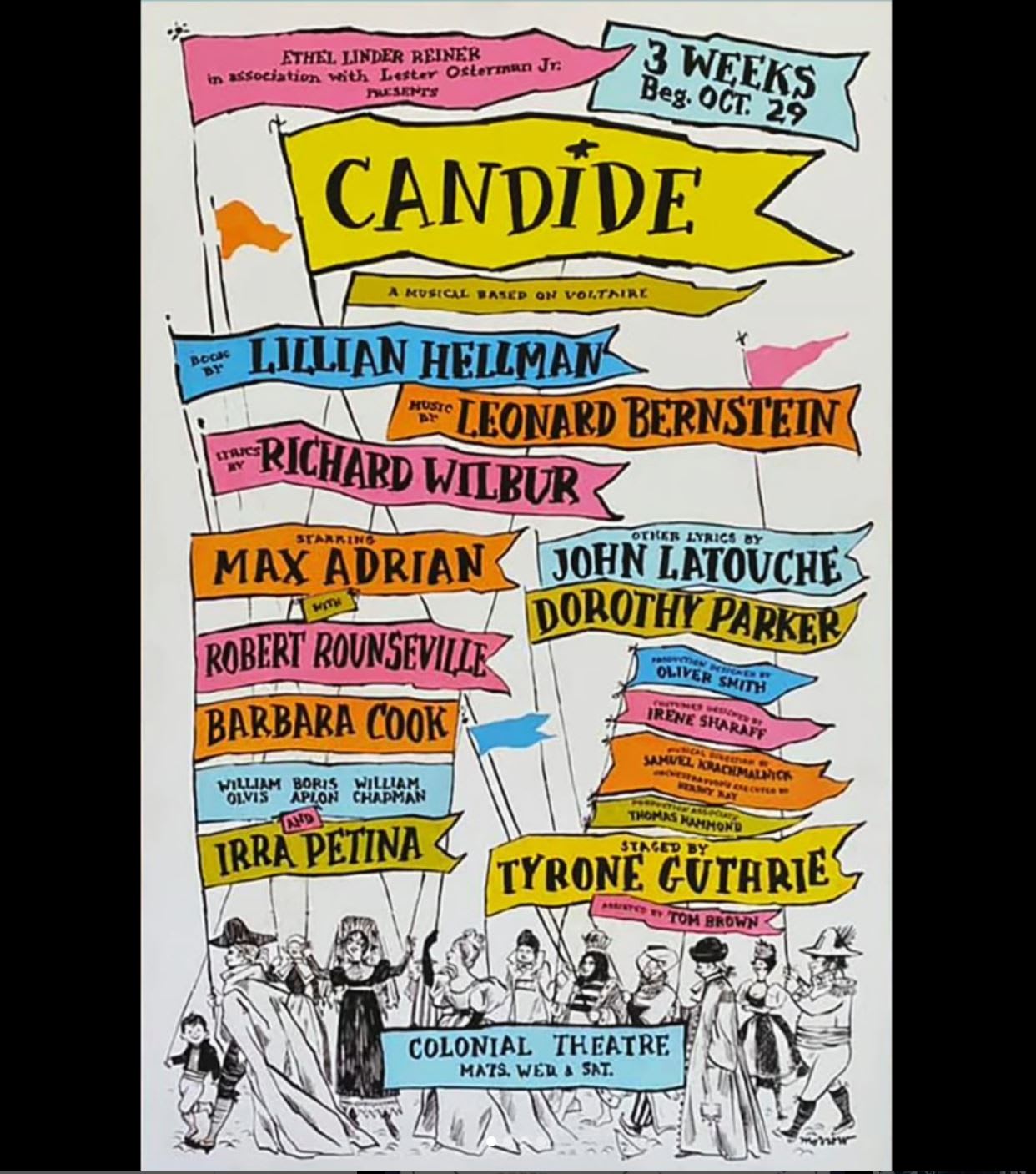 On October 29, 1956, CANDIDE began its pre-Broadway try-out at the Colonial.