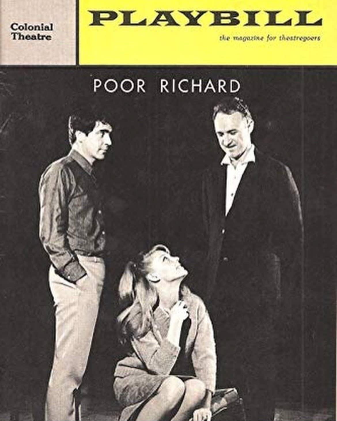 On November 9, 1964, the pre-Broadway premiere of POOR RICHARD opened, featuring Alan Bates, Gene Hackman, Joanna Pettet, and Joan Alexander. Written by Jean Kerr and directed by Peter Wood, POOR RICHARD tells the story of a poet who has recently lost his wife and the secretary who falls in love with him.